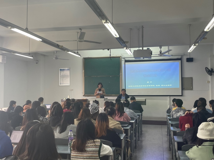 为提升法学院社会工作专业学生对发展中国的社会福利政策和社会工作学科理论与方法的学习,由西南石油大学法学院、科研处主办,西南石油大学社会工作硕士教育中心承办的“建设共同富裕社会战略中的社会工作”专题讲座于10月12日在博学楼A502举行,本次讲座的主讲人是云南大学民族学与社会学院教授、博士生导师钱宁,法学院副院长谭祖雪老师、社会工作专业老师出席,社会工作硕士生和本科生约100余人参加了本次讲座。