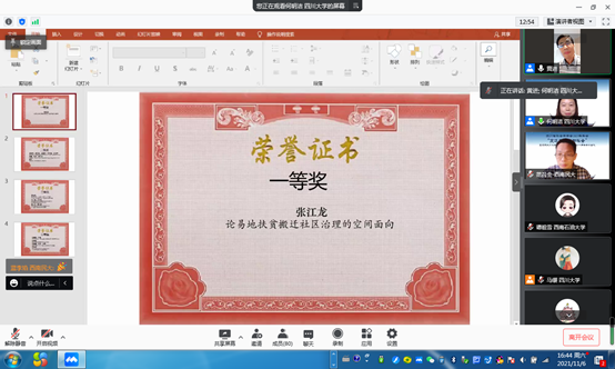2021年11月6日,四川省社会学学会2021年年会“变迁中的西部社会” 暨庆祝四川大学公共管理学院建院二十周年学术会议在线上召开。我校法学院教师张江龙提交的论文“论易地扶贫搬迁社区治理的空间面向”获得一等奖,这也是本次会议评出的唯一一项一等奖。