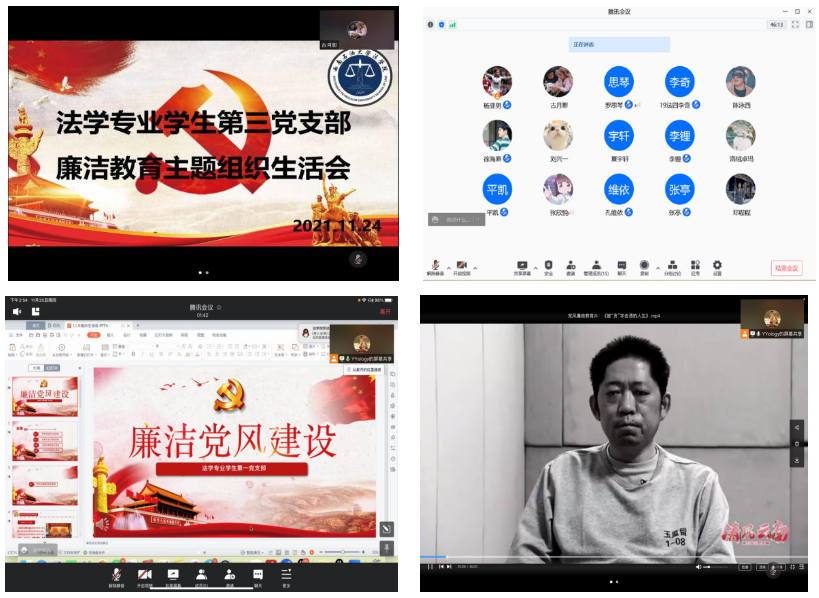 为进一步营造廉洁文化氛围,提升学生廉洁自律意识,11月中旬至12月上旬,法学院纪委面向党员组织开展了大学生廉洁教育系列活动。活动由法学院学生党建中心纪检办牵头承办,内容主要包括廉洁知识学习研讨、读书分享、感悟辩论、组织生活等主题教育等,活动形式多样、效果良好,营造了风清气正的良好氛围。