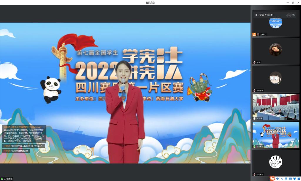 为贯彻落实习近平法治思想,推动法治思维进校园,弘扬宪法精神,普及宪法知识,树立宪法权威,推动宪法教育进校园,9月30日上午,第七届全国学生“学宪法 讲宪法”四川赛区第一片区赛在西南石油大学拉开帷幕。活动由中共四川省委教育工作委员会、四川省教育厅主办,西南石油大学承办,校党委学生工作部和法学院协办。