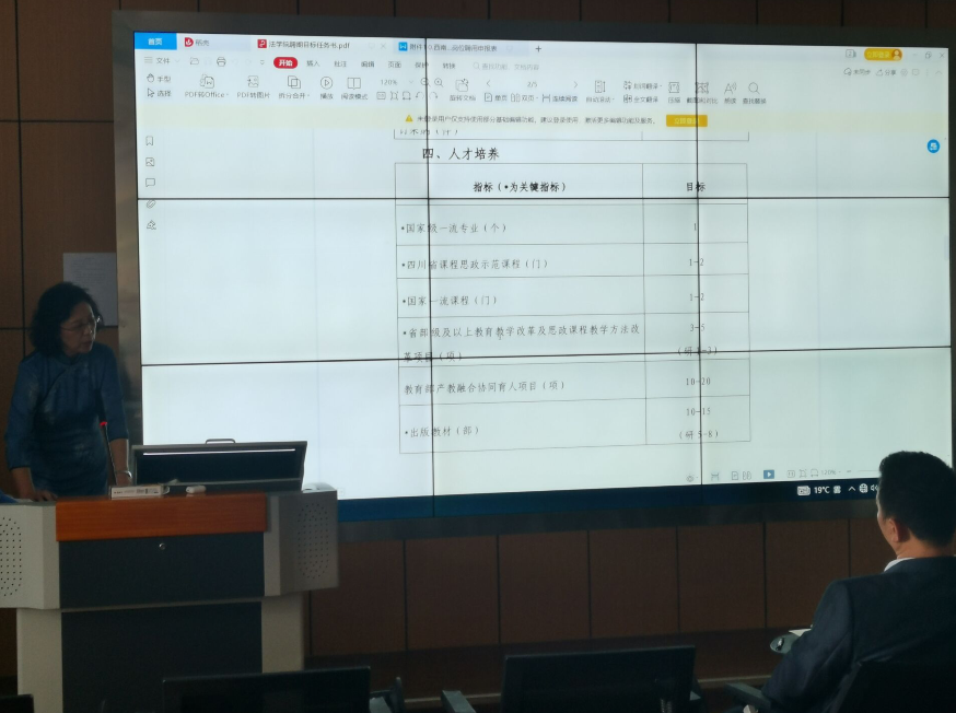 谭祖雪副院长(主持工作)总结了上个聘期学院主要的工作成绩,与会人员一致认为学院取得了长足进步,逐步走上了良性发展的轨道。大家共同分析了学院发展的瓶颈及不足,随后,谭祖雪副院长(主持工作)结合学校深化改革和双一流建设解读了学院新一轮聘期的任务要求,主要包括师资队伍建设、科研工作目标、人才培养等方面,分析了学院下一聘期存在的工作重点和难点。