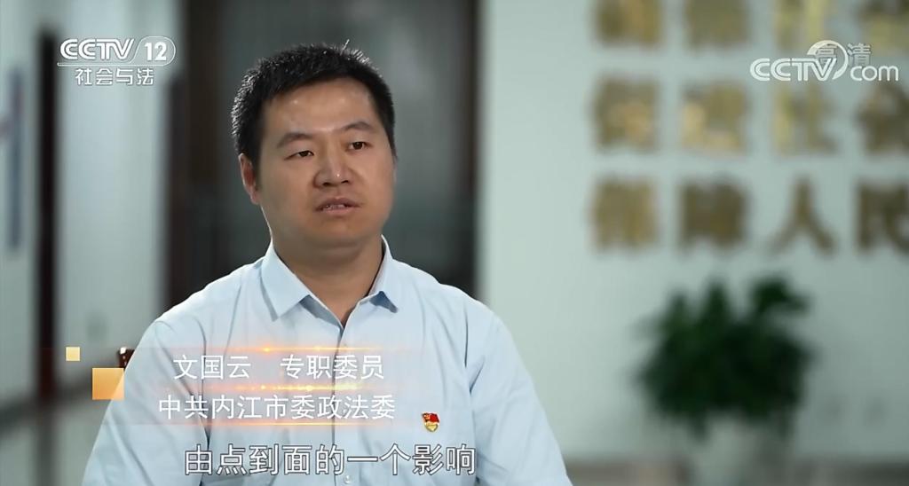 2022年10月21日,CCTV-12社会与法频道《一线》栏目《英雄无悔》专题片播放了我院法学2002级校友、全国“政法双百英模”、中共内江市委政法委专职委员文国云的先进事迹。十集人物专题片《英雄无悔》由中央政法委宣传教育局指导,最高人民法院、最高人民检察院、公安部、司法部等有关部门支持,中央广播电视总台社教节目中心摄制,选取了十位“双百政法英模”的动人故事,拍摄成为原型专题片。