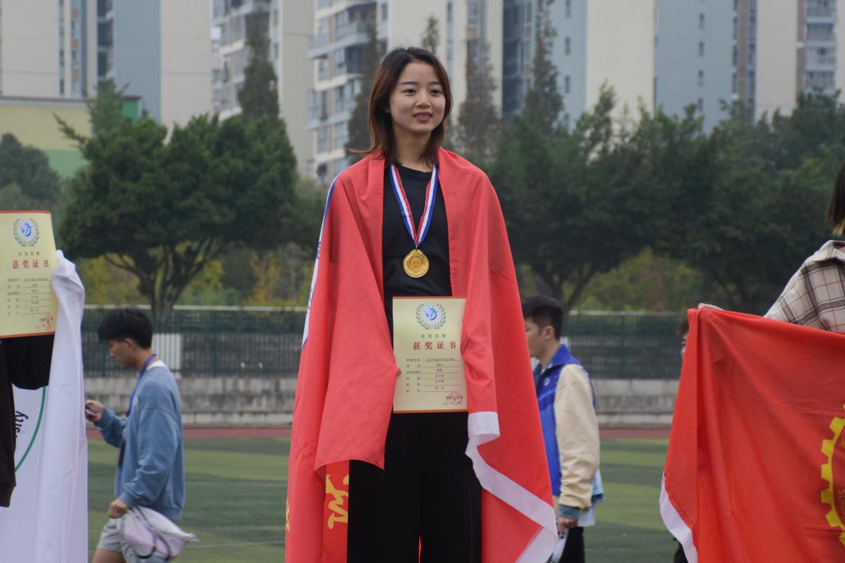 经过一天的激烈比拼,我院荣获女生团体总分全校第二、男生团体总分全校第七的好成绩。其中刘易成获男子400米第一名、男子1500米第六名,胡静获女子跳远第一名,蔡卓宏获女子400米第一名,汪偌熹获男子跳高第三名,胡静、蔡卓宏、杨欣、张沥兮获女子4×100米第四名,吉奎么尔歪获女子800米第四名,杨欣获女子跳远第五名,喻可妍获女子400米第六名,张沥兮获女子100米第七名。