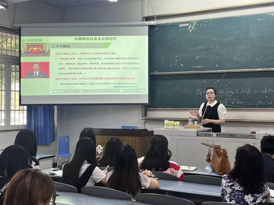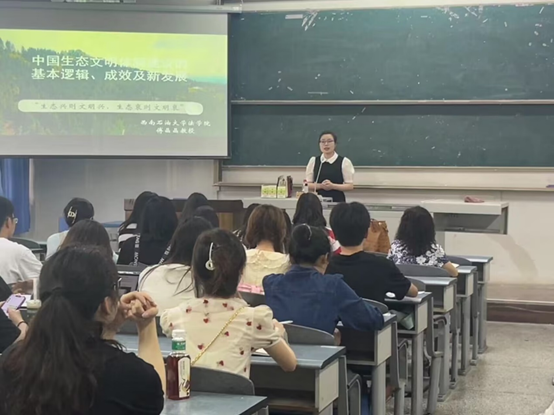 首先,傅院长强调生态环境保护发生历史性、转折性、全局性变化,祖国天更蓝、山更绿、水更清,并从历史逻辑、实践逻辑、理论逻辑进行阐述,强调无论在任何时期,生态文明体制建设都是我国的重要任务之一,指出习近平生态文明思想“十个坚持”的重要指导意义,并且从多方面阐述可持续发展,从中体现出中国智慧、大国责任与担当。接着,傅院长向大家展示中国生态文明体制建设的成效,指出我国积极参与和引导全球环境治理,环境司法体系运行顺畅形成了习近平生态文明思想和完备的生态文明制度体系,并建立了严密的生态文明监管执法体系。最后,傅院长向同学们展示了党的二十大报告的第十部分——四项行动指南,即快速发展方式绿色转型,加快我国产业结构优化升级,提倡全面节约,加大政策对于生态环境治理的支持;深入推进环境污染防治,改善人居环境;提升生态系统的多样性、稳定性、持续性;积极稳妥推进碳达峰、碳中和,这四项行动指南将引导我国有序建设好生态。