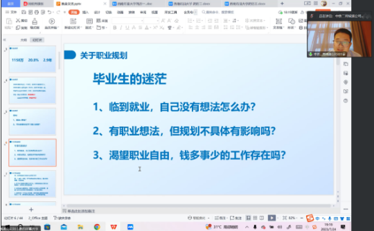 7月19日,我院线上召开了第二期公考上岸经验分享。本次受邀分享的嘉宾是我院2014级法学专业校友卢思雨,其于2022年通过四川省省考入职新都区某机关单位。卢思雨学姐分享了她备考的心得和策略,包括如何高效利用时间、合理安排学习计划以及如何处理考试压力等方面的经验。卢思雨学姐作为成功上岸的优秀校友代表,她的分享给予了毕业生们更多备考的实操经验,也让大家对未来的职业发展有了更明确的规划。