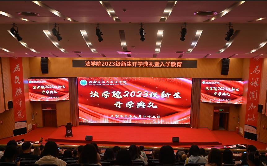 9月25日19:00,法学院2023级新生开学典礼于学校图书馆学术报告厅举行。学院领导班子、各专业教研室主任、新生辅导员和2023级本科生、研究生新生共计500余人参加开学典礼,典礼由院党委副书记、纪委书记于百江主持。