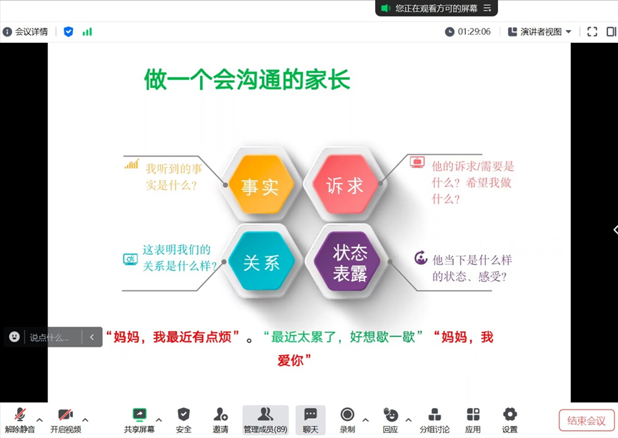 通过此次讲座,不少家长表示有了很大收获,更加懂得了以后应该如何同孩子们沟通,也会更加体贴孩子们,照顾、理解他们的情绪,做孩子坚强的后盾。