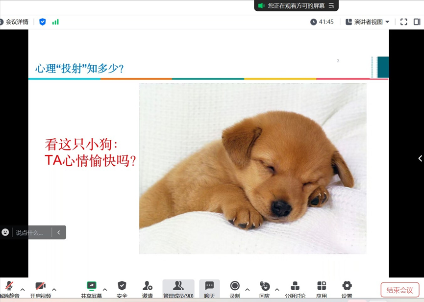 讲座伊始,方可首先以一张小狗的图片提出问题“你觉得这个小狗开心吗?”,之后由此引出“一个人认识世界的角度是受心情影响的,作为家长,首先应该了解孩子,才能有效地帮助孩子”。他基于自己多年的工作经验,为新生家长科普了大学生常见的心理困扰,如环境适应不良、学习困难、自我意识、压力应对、人际关系、情绪、生涯发展的困扰等问题,并从家长-学校-社会三个维度提出了各自对于孩子的成长应担负的责任,提出了要与孩子正常沟通的建议。他用通俗易懂的语言,真实鲜活的案例,让在座的家长们受益匪浅。最后他希望家长们做一个会沟通的家长,建设好大后方“安全基地”、做孩子成长的安全港。