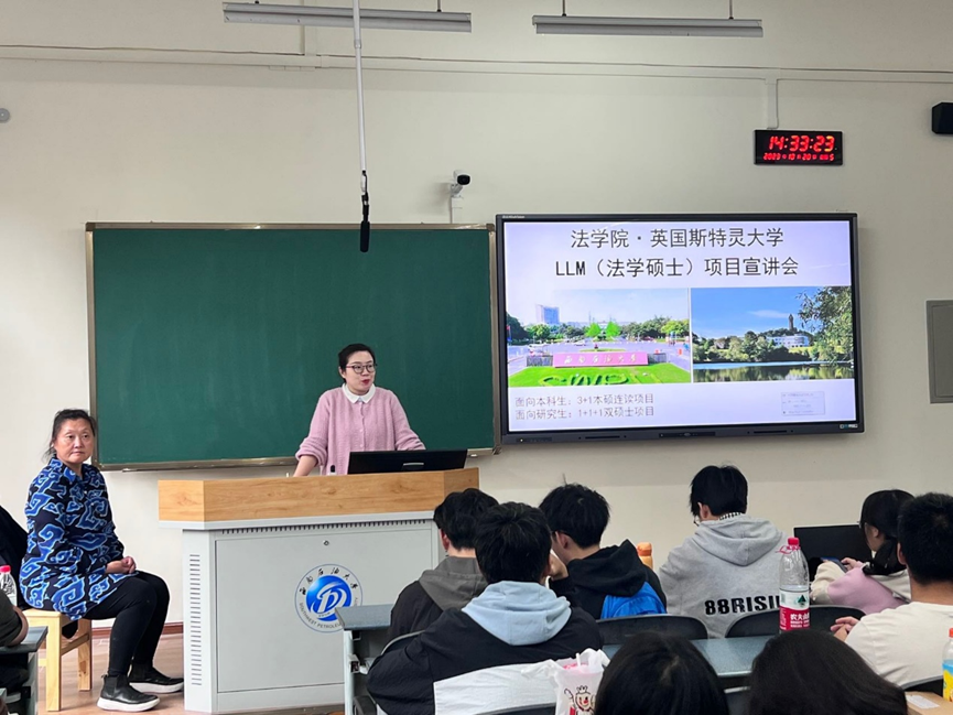 为深入学习贯彻党的二十大精神,助力科教兴国战略实施,激发学生参与国际交流的热情,做好出国相关规划和准备,10月20日下午两点半,法学院在明理楼B203举办了英国斯特灵大学LLM项目宣讲会,院长傅晶晶老师主持会议。法学院300余名师生到现场聆听了宣讲。。