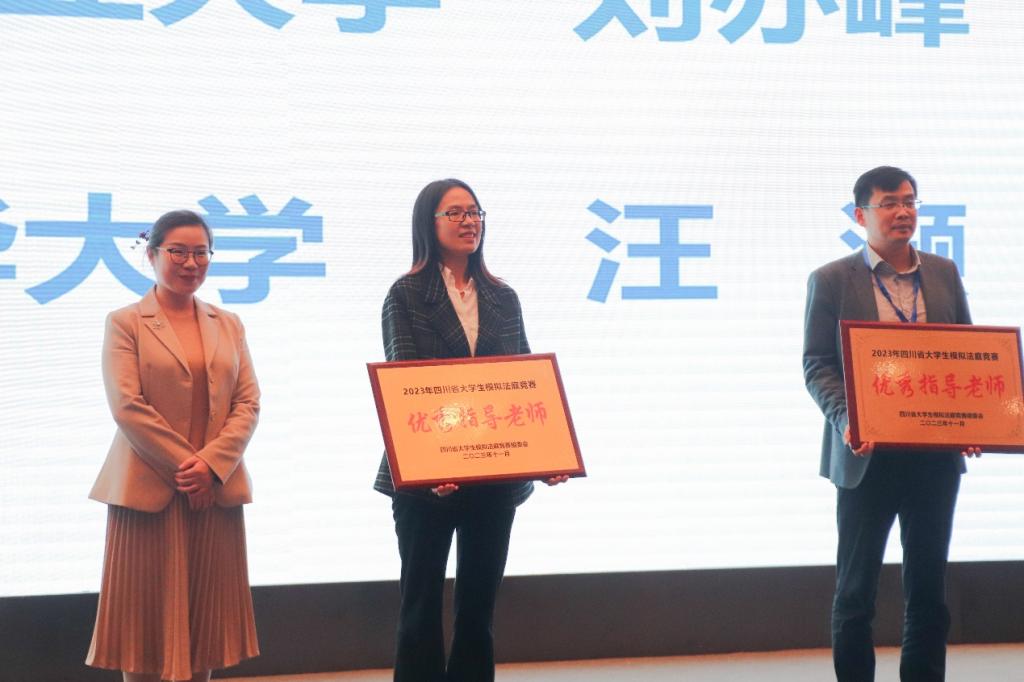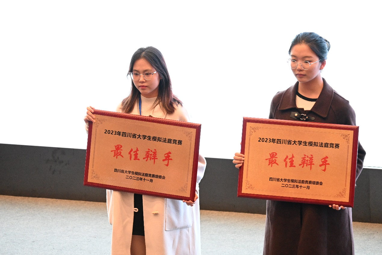 本次模拟法庭大赛历时两天,经过全省22所高校多场激烈庭审对抗,最终由四川农业大学和西华大学获得一等奖。领导嘉宾为各位获奖队伍、选手及优秀指导老师颁了奖。