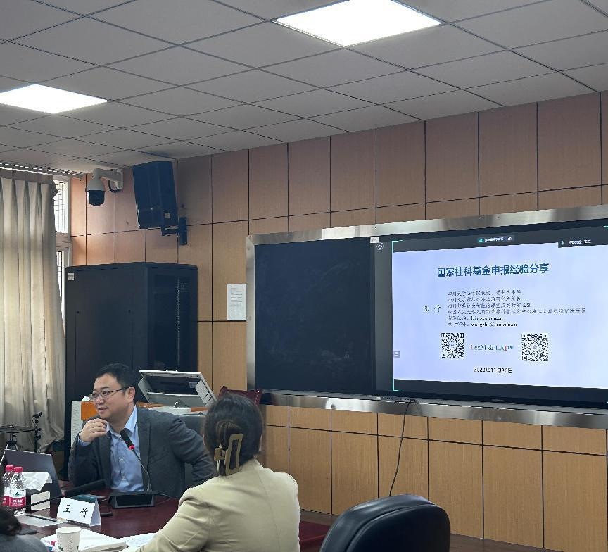 为深入做好2024年国家社科基金项目组织申报工作,提升申报书撰写质量,加强教师间的沟通交流,提高国家社科基金项目申报成功率,11月30日下午,学院举办了国家社科基金项目申报指导专题讲座,特邀四川大学法学院王竹教授作为主讲人向全院教师作报告。本次专题讲座由法学院院长傅晶晶教授主持。