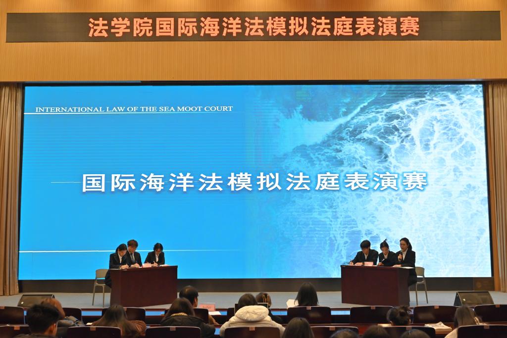 12月7日晚19:00,由法学院举办的国际海洋法模拟法庭表演赛在我校图书馆报告厅正式开赛,并最终取得圆满成功。