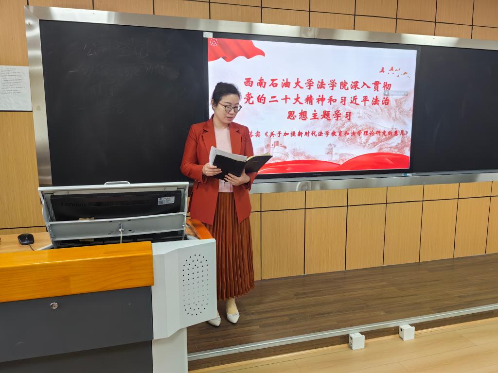 傅晶晶院长表示,学院全体教师应当将学习贯彻习近平新时代中国特色社会主义思想与立德树人根本任务统一起来,以学院下一年度和今后一段时期工作为目标,切实做好三个方面的工作。一是要结合国家需求、学院定位和自身需要,深入研究中国式现代化与法治建设的关系,在加快构建中国特色法学学科体系、学术体系、话语体系,推动中国特色社会主义法治理论和实践创新发展等方面下工夫,加快高水平、显示度成果产出。二是要注重加强统筹国内法治与涉外法治方面的研究。全体教师尤其是法学教师,要科学把握涉外法治深刻内涵,正确认识当前加强涉外法治的重大意义,明确涉外法治建设的核心工作,深入开展相关学术研究。2023年,学院被四川省教育厅推荐申报教育部涉外能源法治人才培养协同创新基地。未来尤其是2024年,学院各方面工作必须抓住涉外能源法治这一重点,加快与“一带一路”沿线国家相关法学院校合作,更加密切高效地开展涉外能源法治方面的研究。三是要教书育人的过程中进一步做好协同育人工作,培养专业精深、能力突出、全面发展的新时代法治人才。在人才培养中,老师们必须有意识地坚持目标导向,不断强化地方应用型法治人才培养特色,结合自身专业优势和特点,在行业面向上实现法治人才培养的明确化、精细化。