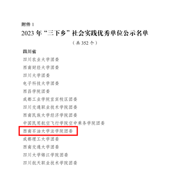 为深入总结交流经验、选树典型宣传、推动引领示范、激励广泛参与、发挥育人实效,团中央青年发展部通报表扬了一批在2023年四川省大中专学生志愿者暑期文化科技卫生“三下乡”社会实践活动中表现突出的优秀集体、个人和项目。我院团委荣获2023年全国“三下乡”社会实践优秀单位,全川仅14家单位获此殊荣。