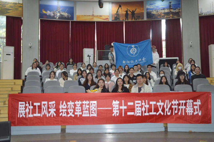 汇聚社工力量,共绘变革新篇。为弘扬社工精神,提升社工专业影响力,3月25日,法学院朝阳社工协会于思学楼举办“展社工风采,绘变革蓝图”第十二届社工文化节开幕式暨系列讲座。学院党委副书记、纪委书记于百江、副院长周炎炎、社会工作教研室副主任张江龙、院团委书记、学生工作办公室主任邓超越及辅导员们,校外社工界代表应邀参加了此次活动。