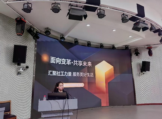 最后,新都区青年志愿者协会会长、新都区智青年公益服务中心理事长吴倩以“汇聚社工力量,服务美好生活”为题开展讲座,她自身经历为例,为同学们讲述了真实生动的“社工故事”,向同学们展示了社会工作的丰富内涵和广阔前景。带领同学们更全面地认识社会工作,感受其独特的魅力和价值。她也对同学们提出了殷切期望,希望同学们深入了解社会工作的内涵,积极投身到社会工作的实践中去,成为社会工作行业的开拓者。