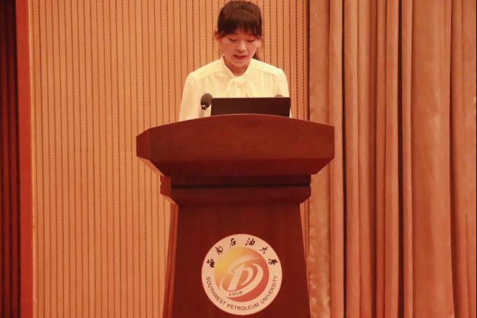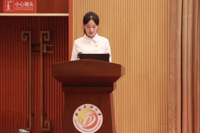 社会工作专业硕士2023级陈婧瑶同学作为在校生研究生代表发言。本科也就读于西南石油大学的她,在对法学及校园的热爱驱动下,选择继续在此学习。陈婧瑶分享亲身经验,勉励学弟学妹们珍惜时间,抓住机遇,奋发有为。