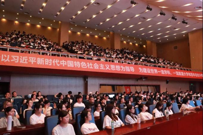 最后,新生代表来自法学2024级的张菲扬同学发言,她以“追随本心,终于自己”为主题,激励同学们勇敢追寻自我,探索人生新体验。张菲扬同学站在新生的角度,表达了对未来大学生活的思考与期待,展现了积极上进、勇往直前的决心。