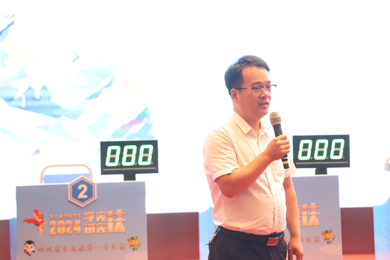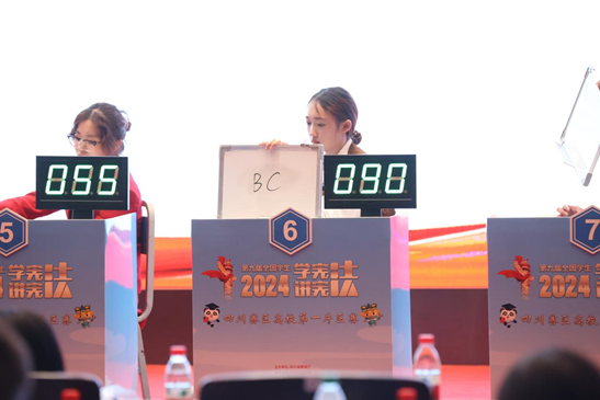 本次竞赛分为单选题和多选题两个环节,均为必答题,根据每位选手的最终得分进行排名,排在前两名的选手将晋级省级决赛。比赛过程中,选手们展现出了扎实的理论功底和快速的反应能力,纷纷就宪法相关问题给出答案。经过激烈比拼,来自四川大学的张赐、四川工商职业技术学院的陈曾玉两位选手脱颖而出,成功晋级省级决赛。