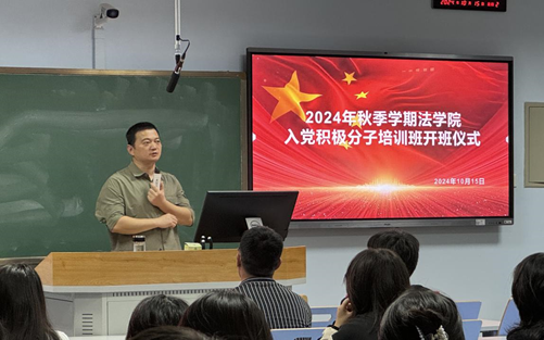 为深入学习贯彻二十届三中全会精神,落实全面从严治党新要求,严把发展党员“入口关”,保证发展党员的质量,增强对入党积极分子的教育和培养,培育入党积极分子的党性修养,2024年10月15日,2024年秋季学期法学院入党积极分子培训班开班仪式在博学楼B508举办。
