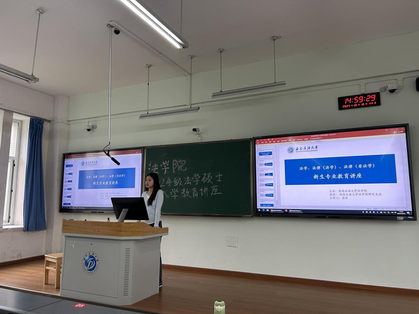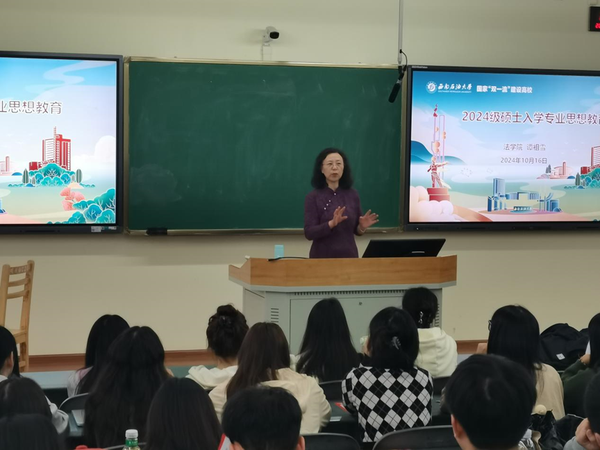 金风送爽,秋华灿烂。为帮助法学院2024级新入学的硕士研究生明确学习目标、做好学业规划、明确未来职业发展方向,西南石油大学法学院于10月16日下午15:00,分别在明辨楼C202与明志楼A301举办了2024级社硕和法硕专业新生入学教育报告会,并有幸邀请到谭祖雪教授和梁分教授担任主讲。