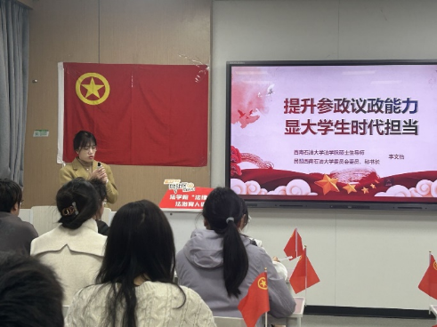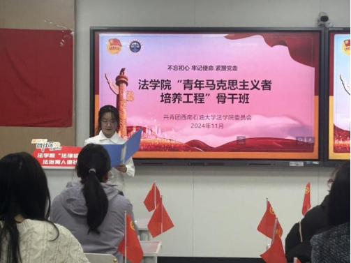 为深入学习贯彻习近平新时代中国特色社会主义思想和党的二十届三中全会精神,深化学员对马克思主义中国化理论成果的理解和领悟,助力学员成长为马克思主义的坚定信仰者、自觉传播者和忠实实践者,11月21日下午,法学院举行了“青马工程”骨干班提案撰写专题培训。本次活动特别邀请到了西南石油大学法学院李文怡老师担任主讲嘉宾,法学院团委书记邓超越老师参会。
