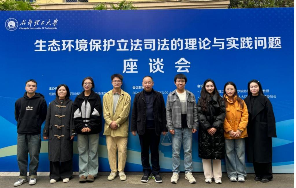 为响应国家生态文明法治建设的号召,深入探讨生态环境保护立法、司法实践中的关键性理论问题与实践问题,推动生态文明法治建设的理论创新与实践发展,2024年11月27日下午,成都理工大学和四川省法学会环境资源法学研究会特邀全国人大常委会委员、全国人大环境与资源保护委员会副主任委员,农工党中央副主席,中国法学会副会长、中国法学会环境资源法学研究会会长吕忠梅教授莅临考察和指导工作。受成都理工大学的邀请,法学院崔金星、宛佳欣两位老师参加“生态环境保护立法司法的理论与实践问题”座谈会,并听取吕忠梅教授作题为《生态环境法典编纂的相关问题》的学术报告。