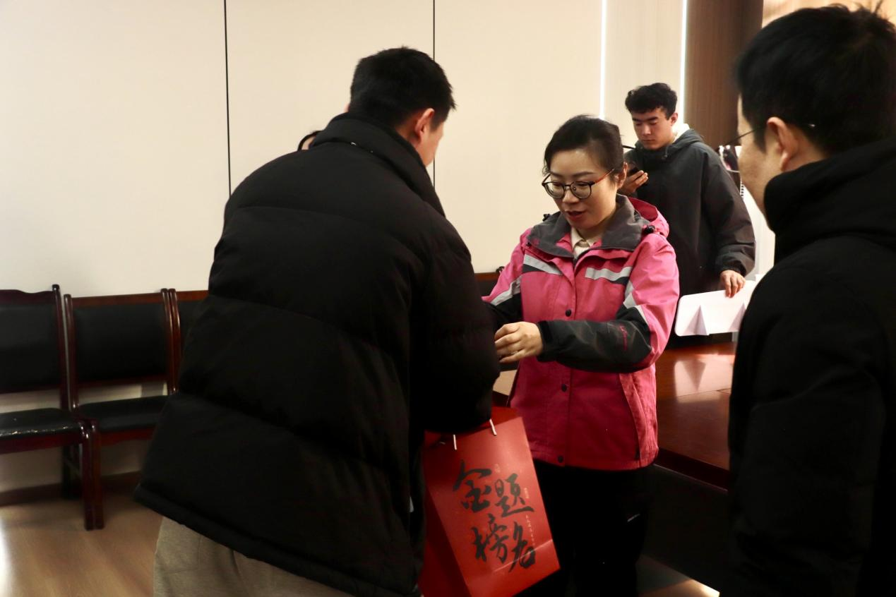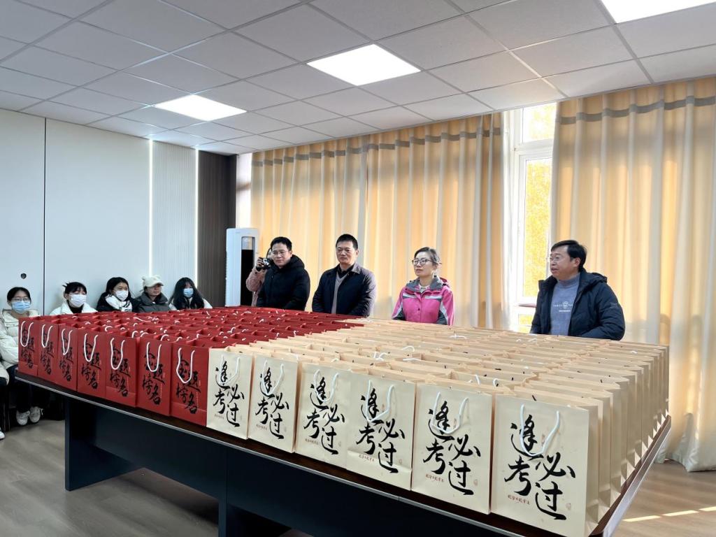 学院精心准备150余份考研“加油包”,共装有六类物品,寓意考研学子在考研过程中“六六大顺”,有一战“橙”硕-果冻橙、“巧克”难关-巧克力、好“事”发生-乐事薯片、好运“旺旺”-旺仔牛奶、考运“棒棒”-棒棒糖、一举夺“葵”-向日葵挂件,以及印上金榜题名和逢考必过的礼品袋。一个个暖心礼包,带着满满的祝福和期待,送入到考研学子的手中。现场,学院领导鼓励同学们在最后的冲刺阶段,要坚定必胜信心,以最佳状态迎接考试。