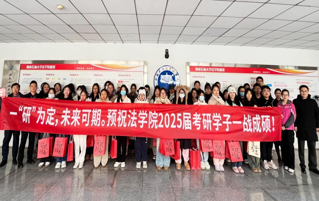 “研”路花开,温暖相伴,为帮助考生坚定信心、加油助力,12月17日上午,法学院在博学楼为2025届考研学子送上学院精心准备的暖心加油包,护航研途“最后一公里”。学院领导班子、毕业班辅导员以及考研学生参加了此次活动。