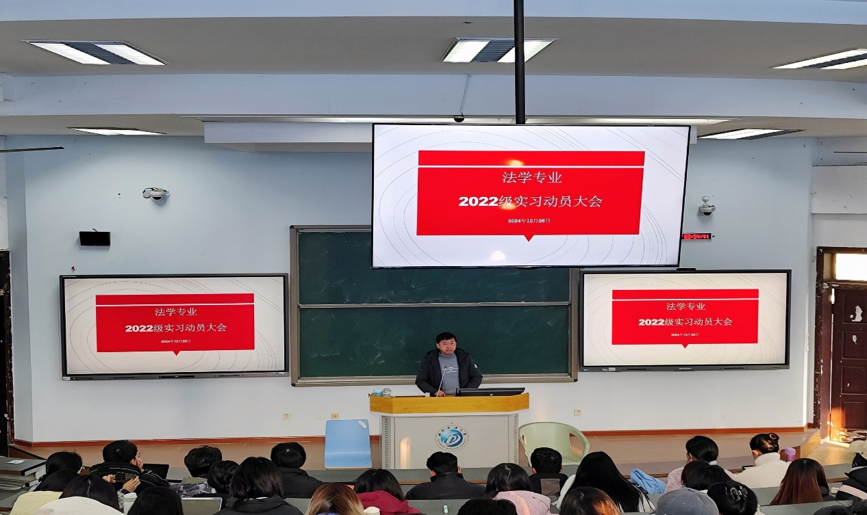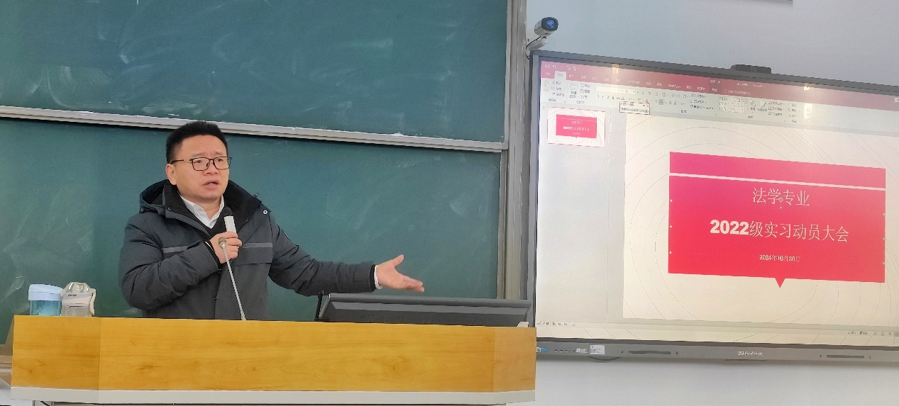 12月26日上午,我院在思学楼C210召开了法学专业2022级实习动员会。参与此次大会的有法学院党委副书记、纪委书记于百江、法学院实习实训中心主任宋旭平、2022级辅导员邵梧枭以及2022级法学专业同学。