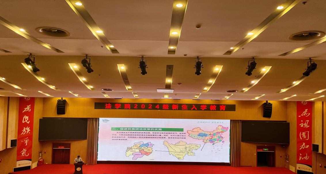 9月12日上午,法学院在图书馆学术报告厅面向2024级全体法学专业和社会工作专业新生开展民族团结进步教育活动。法学院全体师生参与,讲师邵梧枭担任此次主讲人。