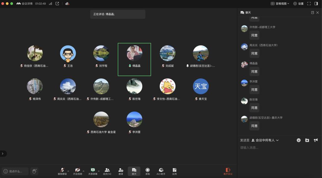 会议由西南石油大学法学院院长傅晶晶教授主持。西南石油大学法学院副院长周炎炎教授,以及法学院教师王浩副教授、崔金星副教授、李文怡博士、宛佳欣博士等领导和老师参加会议。会议采用线上会议方式举行。