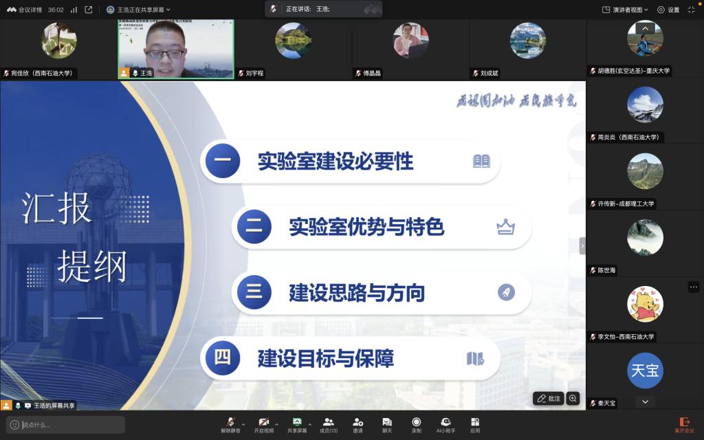 在实验室建设研讨环节,王浩副教授代表新能源高质量发展效力评估与运行分析重点实验室作了关于实验室建设基本情况的报告。王浩副教授从实验室建设的必要性、优势与特色、建设思路与方向、建设目标与保障等四个方面进行了详细介绍。与会的各位专家和学者重点就新能源高质量发展效力评估与运行分析重点实验室的建设思路与方向进行了点评和指导。