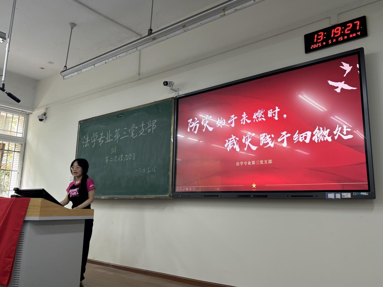 通过组织教职工安全培训、开展党支部应急专题学习、召开团组织防灾主题会议及班级防灾减灾主题班会等多样化形式,向师生普及地震、火灾、洪水等灾害的预防措施与应急处置方法。