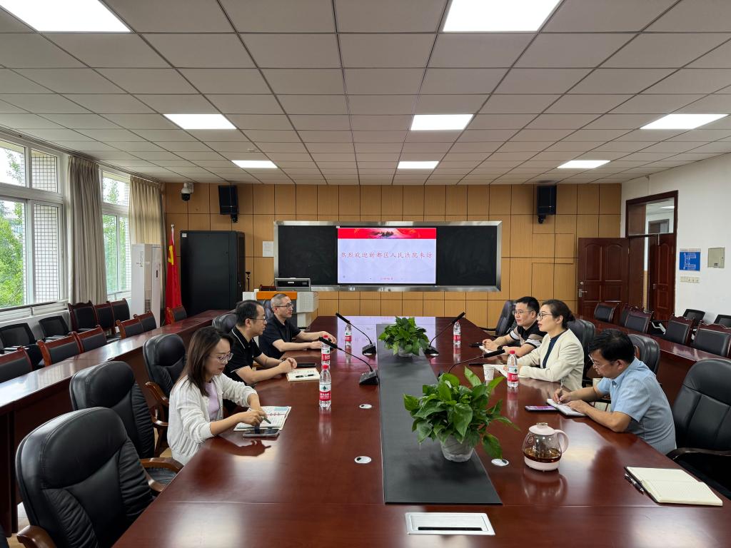 5月29日上午,新都区人民法院党组书记、院长郭伟,党组成员、副院长付建勇,党组成员、政治部主任徐嘉一行到访我院,就深化院校合作、协同推进法治人才培养、创新开展科学研究进行了深入友好交流。法学院院长傅晶晶,党委副书记、纪委书记于百江,副院长周炎炎在博学楼A408会议室会见了郭伟一行。院长助理宛佳欣参加会议。
