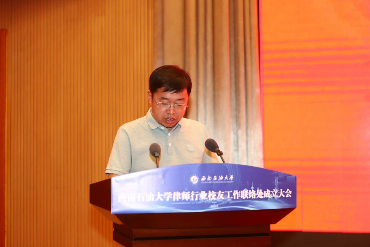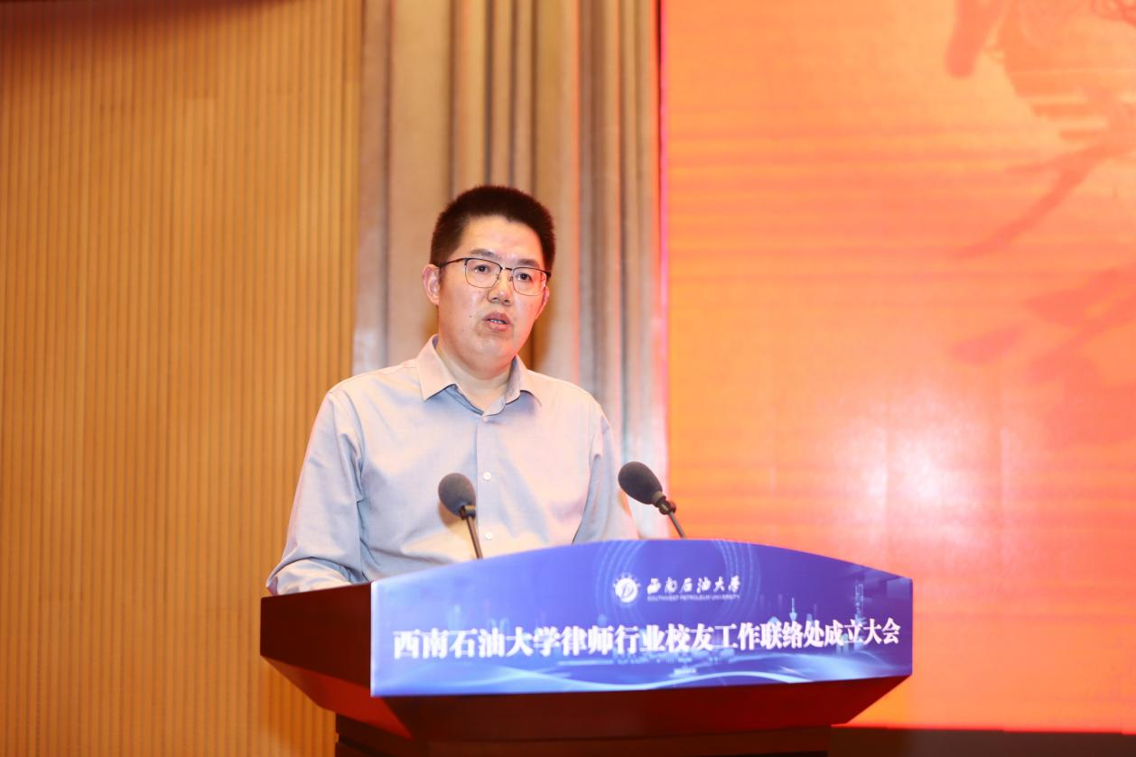 5月30日,西南石油大学律师行业校友工作联络处(以下简称:律师行业校友联络处)成立大会在西南石油大学图书馆报告厅举行,省纪委监委驻校纪检监察组组长、校党委副书记、纪委书记张明出席大会并致辞,校党政办副主任陈刚、招就处就业中心主任杨敬、法学院党委书记张华春、党委副书记于百江、副院长王浩以及五十余名律师行业校友代表参会,会议由法学院院长傅晶晶主持。