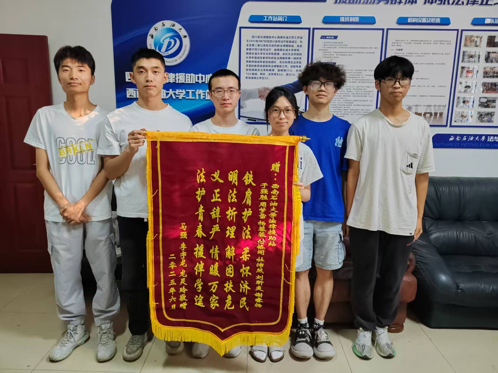 2025年6月10日,我校在校学生马XX、李XX为法律援助站送来一面锦旗,为法律援助站庭外全程援助服务再添成果。