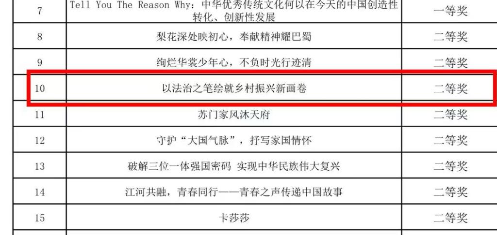 此次成绩充分彰显了法学院师生良好的政治素养、专业能力和社会责任感。未来,法学院将继续依托法学专业优势,常态化开展基层法治宣讲与服务活动,为法治乡村建设和乡村振兴战略实施贡献青春智慧与力量。