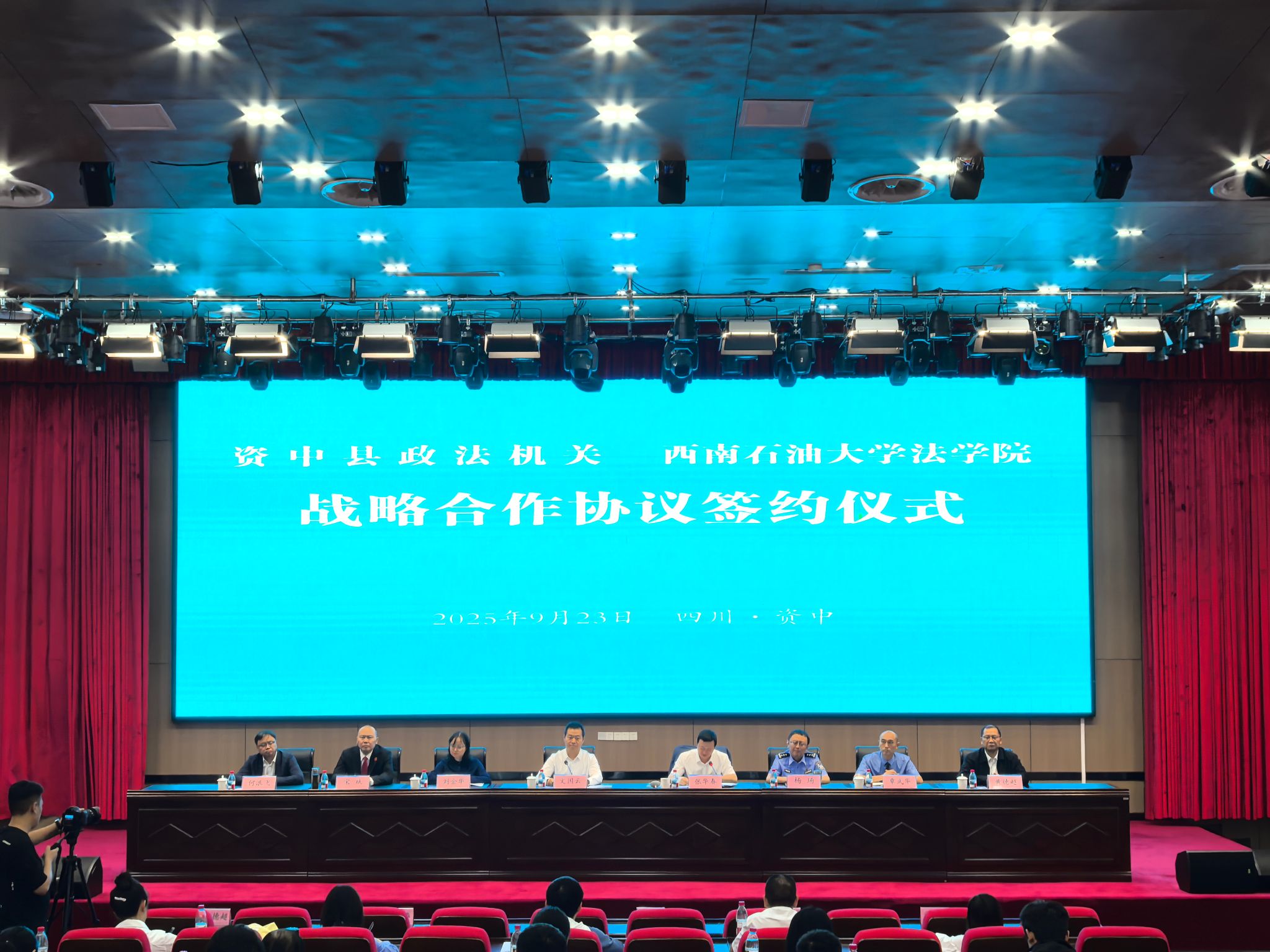 9月24日,资中县政法机关与西南石油大学法学院战略合作协议签署仪式在资中县委党校隆重举行。资中县政法委书记文国云,西南石油大学法学院党委书记张华春、社会治理研究院院长刘金华出席仪式,双方相关负责人共同见证这一重要时刻。仪式现场,文国云书记首先代表资中县政法机关致辞。他指出,资中县政法机关肩负着维护县域政治安全、保障社会大局稳定、促进社会公平正义、守护人民安居乐业的重要使命,当前正全力推进更高水平的平安资中、法治资中建设。西南石油大学法学院作为省内法学领域的重要力量,在能源法学研究、法律人才培养、公共法律服务等方面成果丰硕,此次战略合作的达成,将为资中县政法工作注入专业学术动能,助力政法领域改革深化与法律服务能力提升,为县域高质量发展筑牢法治屏障。张华春书记随后介绍了西南石油大学法学院的学科优势与发展成果。他提到,法学院拥有法学硕士学位授权一级学科,法学专业先后入选四川省卓越法律人才培养计划、省级一流本科专业建设点,在法治理论研究与实践应用领域积累了丰富经验。此次与资中县政法机关携手,是学院服务地方法治建设、推动产学研用深度融合的重要举措,未来将充分发挥教学科研与人才资源优势,为资中县政法工作提供坚实的理论支撑与智力支持。在双方代表的共同见证下,文国云书记与张华春书记分别代表资中县政法机关、西南石油大学法学院签署《战略合作协议》。根据协议,双方将秉持“平等互利、优势互补、相互支持、长期合作、共同发展”原则,重点围绕科研创新合作与人才交流培养两大领域开展深度合作:在科研创新方面,将联合探索中国特色社会主义法治体系建设中的前沿问题,共建学术交流机制,合作推进课题调研、疑难案件分析及案例库数字化建设;在人才培养方面,将共建法治社会实践基地、就业实习基地与创新创业基地,同时为资中县政法系统及县域企事业单位骨干提供高层次法律学历学位教育,打造法治人才培养与实践的良性互动平台。