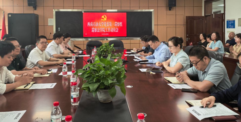 10月9日下午,学校党委第一巡察组巡察法学院工作动员会顺利召开。驻校纪检监察组组长、校党委副书记、纪委书记、学校巡察工作领导小组常务副组长张明,化工院党委书记、巡察组组长蒲冠州,巡察办公室副主任肖斌,及第一巡察组全体成员出席会议。