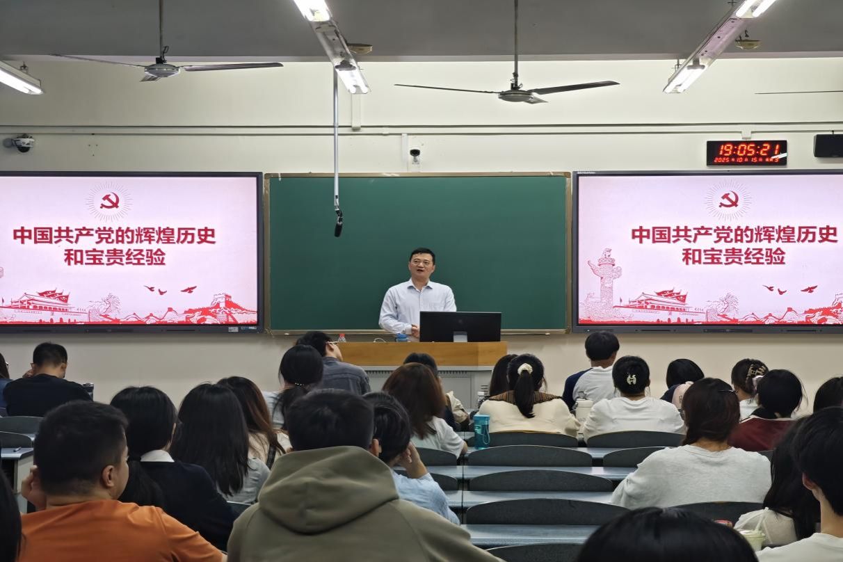 开班仪式上,法学院党委书记张华春作动员讲话,他希望学员们思考未来要成为什么样的人,要确立怎样的目标。他强调,入党积极分子要做到“学党史、知党情、强党性”,严格遵守党的纪律要求,不断提升自身的政治素养和思想觉悟。随后,张书记以“党的辉煌历史和宝贵经验”为主题,为学员们上了一堂生动的党课。张书记详细阐述了党史的发展脉络以及党的发展所经历的四个阶段,带领学员们回顾了党在不同历史时期的重大事件和重要决策。同时,从毛泽东提出的三大法宝及习近平总书记关于“从严治党+自我革命”的重要论述,让学员们深刻认识到党的先进性和纯洁性。