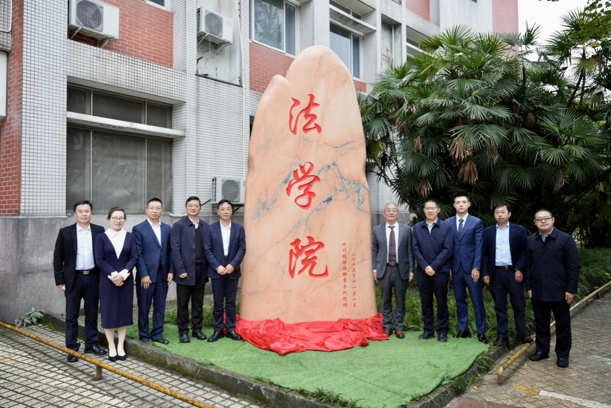 11月1日上午,法学院“学院石”揭幕仪式在石泉广场博学楼一侧举行。校党委书记张烈辉,省纪委监委驻校纪检监察组组长、校党委副书记、纪委书记张明,四川明炬律师事务所党委副书记白强,执委会委员、教育培训委员会主任张杨,校党政办公室主任、教育发展基金会理事长覃吉春出席,法学院领导班子及师生代表参加,共同见证“学院石”揭幕。仪式由法学院院长傅晶晶主持。