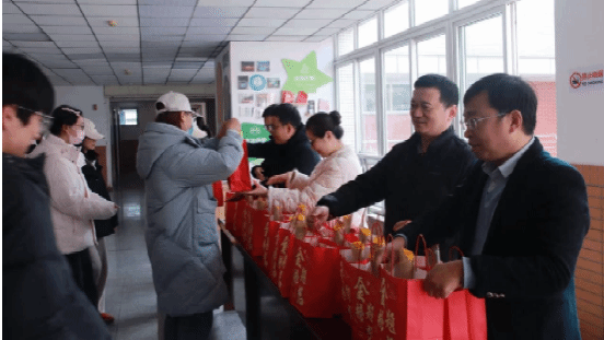 图1: 学院老师给学子们分发加油包