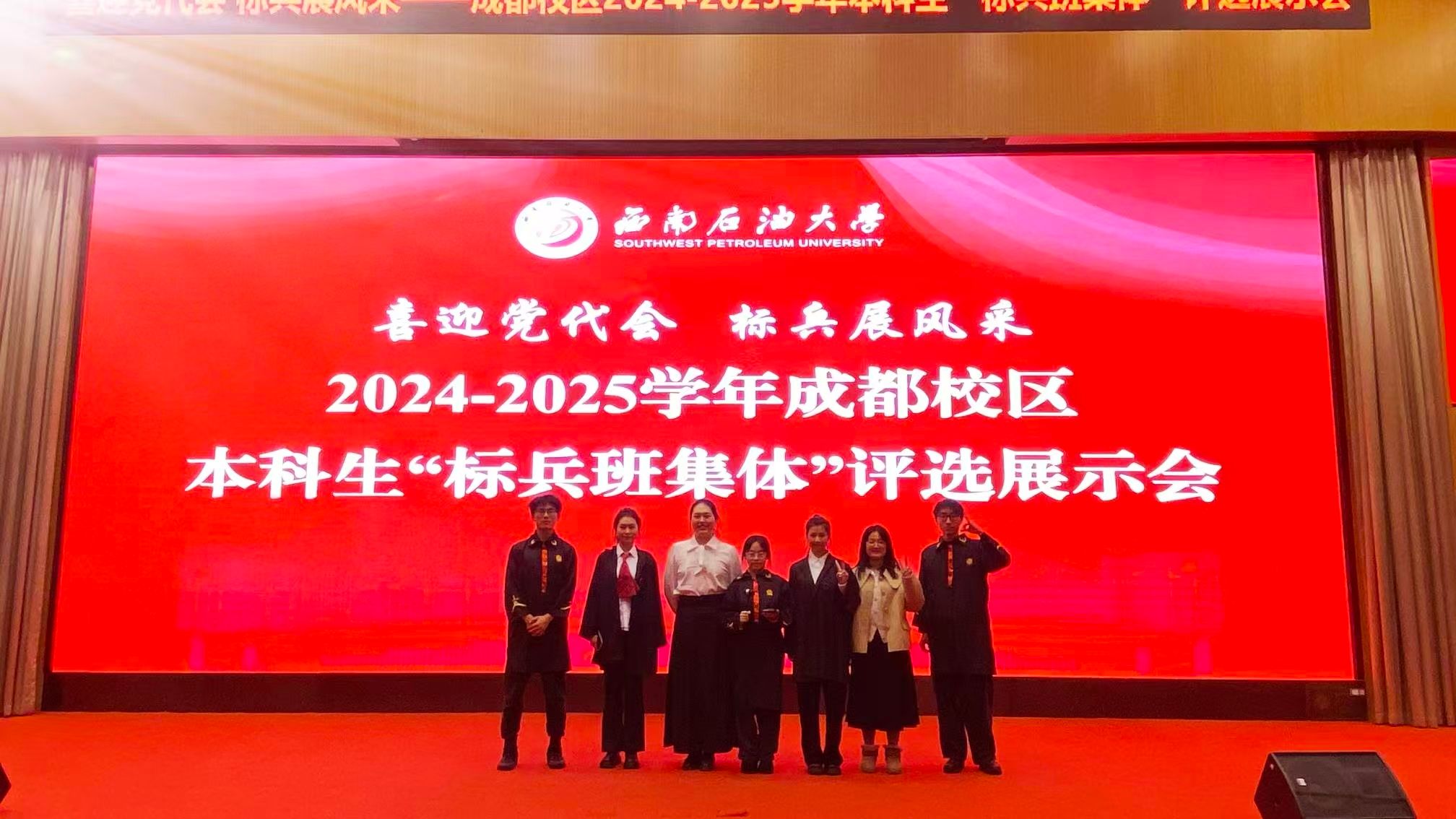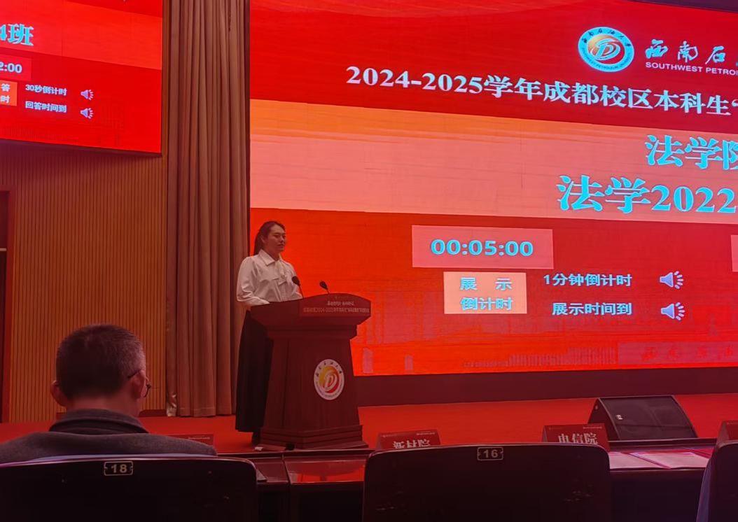 旌旗猎猎展风采,标兵领航启新程。2025年12月24日,西南石油大学2024-2025学年成都校区本科生“标兵班集体”评选展示会在图书馆汇报厅圆满落幕。经过激烈角逐与综合评审,法学2022级4班凭借"思想引领有高度、学风建设有力度、实践服务有温度、班级建设有特色"的亮眼表现,成功斩获“标兵班集体”荣誉称号,成为全院班级建设的标杆典范,此次本科生“标兵班集体”全校仅评出6个。