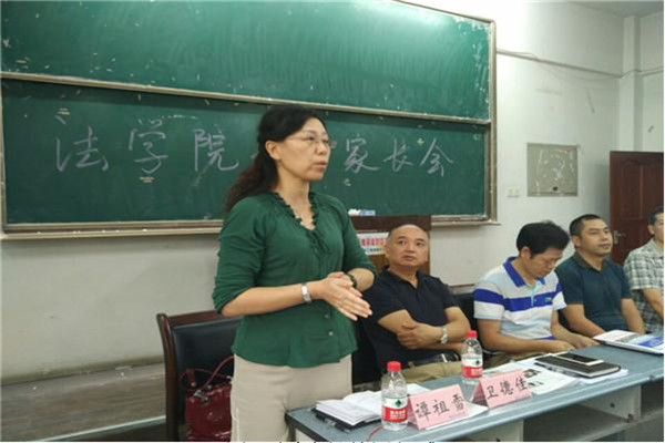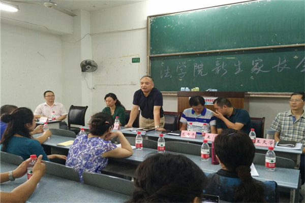 9月8日下午四点半,法学院新生家长会在博学楼A202准时召开。法学院党委书记兰力平,院长卫德佳,党委副书记王斌,副院长谭祖雪与王天学及部分教职工代表均准时参与会议,共同为与会家长讲解院校事宜,为其答疑解惑。