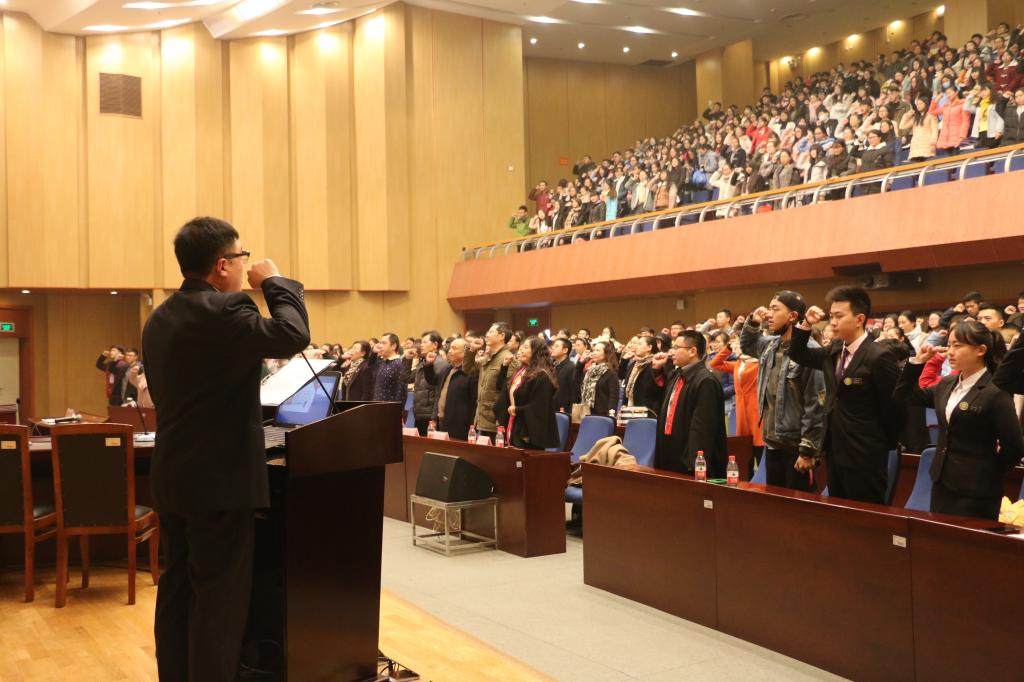 为响应法制宣传日的号召,开展以宪法为核心的法律法规宣传教育活动,2016年12月8日,由西南石油大学法学院辩论队主办的“12.4”宪法日宣誓暨“法辩先锋”表演赛在图书馆学术报告厅顺利举行。法学院党委书记兰力平、院长卫德佳、党委副书记王斌、副院长谭祖雪、副院长王天学、指导老师洪晓华、法学教研室的全体老师以及2015级、2016级全体学生参与了本次活动。