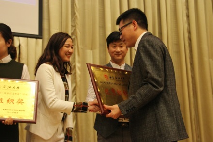 我院荣获2017年度“感恩高中母校分享石大青春”志愿者活动优秀组织奖,招就部指导老师邓超越代表学院上台领奖。