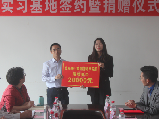 为加强法学院与法律实务部门的交流与合作,促进法学教育与法律实务的结合,北京盈科(成都)律师事务所与西南石油大学法学院签署了合作协议。4月26日上午,法学教学实习基地授牌暨捐赠仪式在西南石油大学博学楼AB510举行。盈科律师事务所管委会主任廖行、执行主任曾新程、国有资产法律事务部主任陈丰、破产重组与清算法律事务部主任阮学武、宣传部主管瞿颖彦,西南石油大学校友总会、教育发展基金会秘书长亢旗军、副秘书长刘恒、学生工作部(研究生工作部)副部长张浩、法学院党委书记兰力平、院长卫德佳,教授委员会主任粱分、教学办公室主任宋旭平出席本次捐赠仪式。仪式由法学院党委副书记于百江主持。