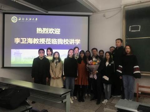 李卫海教授与听讲座的老师和同学合影