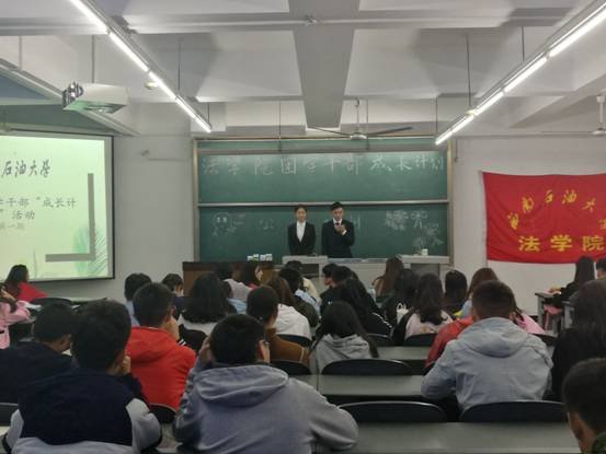 为响应十九大报告中习近平总书记对青年一代发展的信心与厚望,同时也为了响应党中央、团中央所号召的进一步加强基层党团组织建设以及培养高素质社会主义人才的号召。10月29日下午3点,由西南石油大学法学院团委宣传部、组织部、秘书处合办的法学院团学干部“成长计划”第一期公文写作培训大会在思学楼B409准时举行。法学院团委学生会副书记肖家欣和全媒体中心主任李佳悦以及法学院团学干部参加了此次活动。